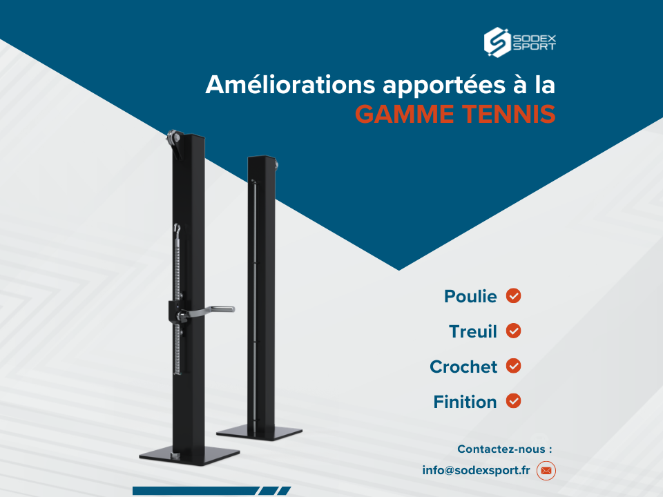 Après avoir écouté les retours de notre clientèle d’installateurs et de revendeurs, notre bureau d’études a réalisé plusieurs améliorations sur notre gamme de poteaux de tennis, parmi lesquelles :