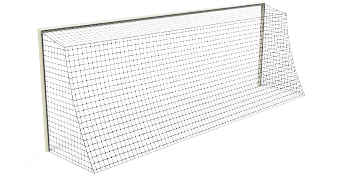 Filet pour but 6m x 2,1m, en polypropylène traité anti-UV et de forme trapézoïdale.