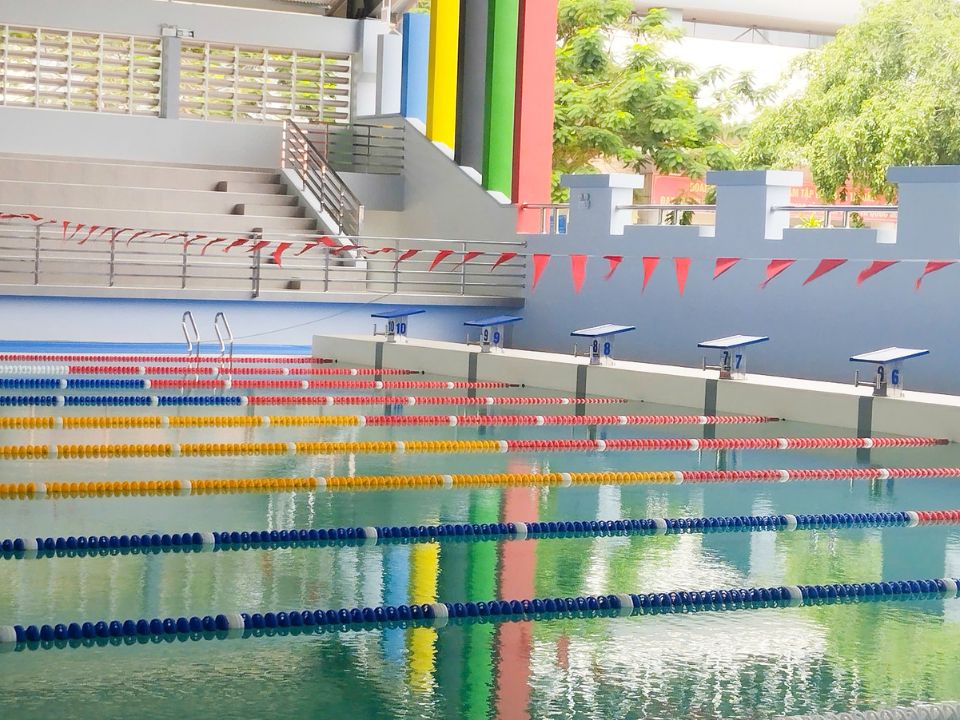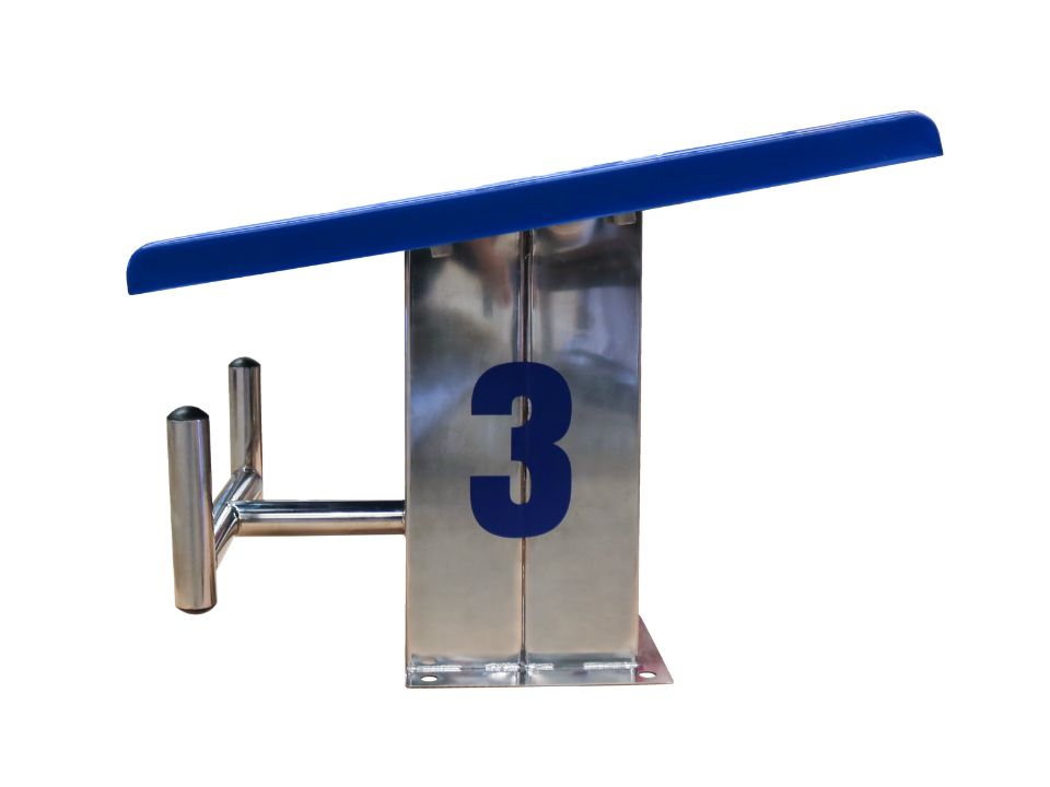 Plot de départ de piscine en acier inoxydable, avec surface anti-dérapante.