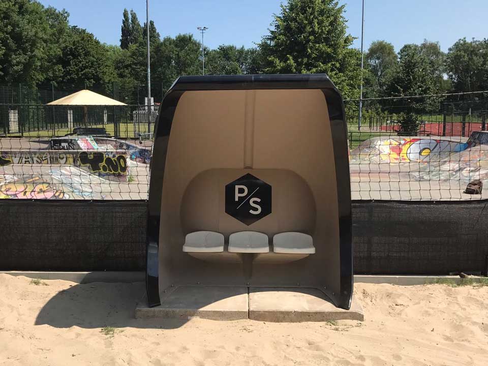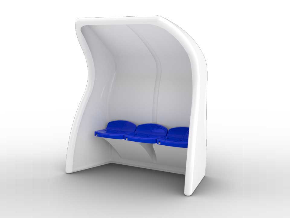 - Abri de touche monobloc standard ayant une capacité de 3 joueurs.