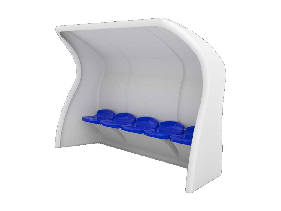 Abri de touche monobloc standard en composite d'une capacité de 3 joueurs.