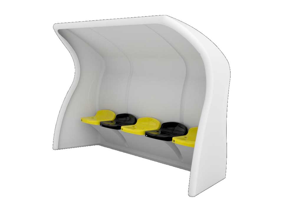 Abri de touche monobloc standard en composite d'une capacité de 5 joueurs.