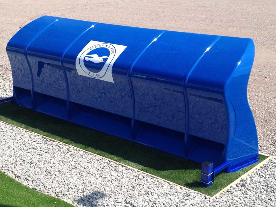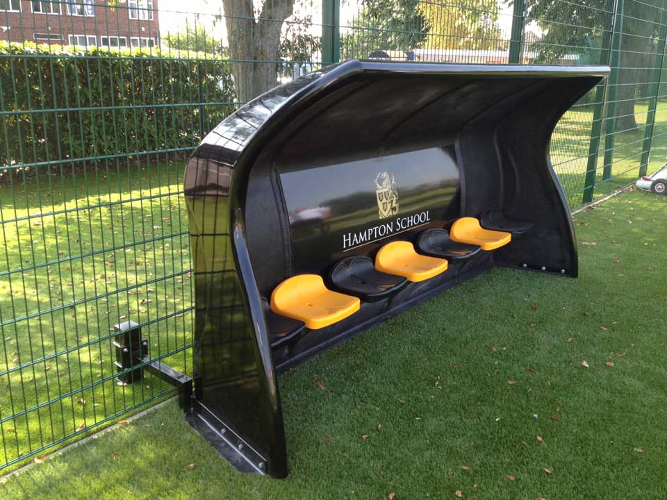Abri de touche monobloc standard en composite d'une capacité de 7 joueurs.