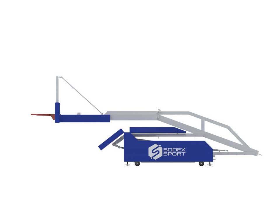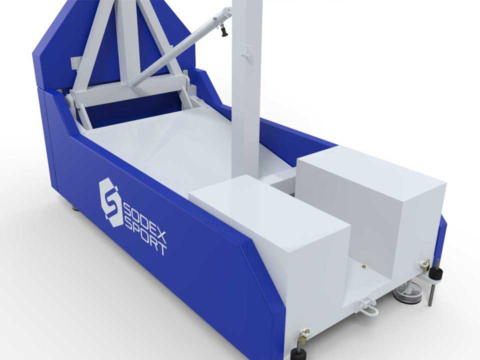 - Fixation par ancrages ou auto-stable (option avec contrepoids). - Composé de 8 roues non-marquantes (2 doubles roues fixes et 2 pivotantes).