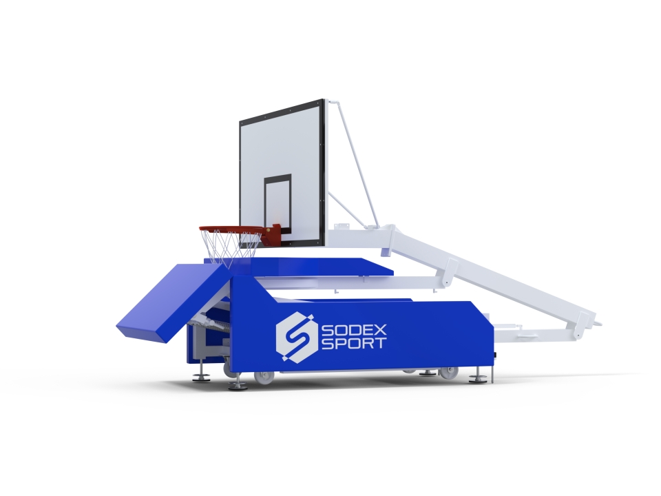 But de compétition de basket intérieur mobile et pliable, déport 1.20m