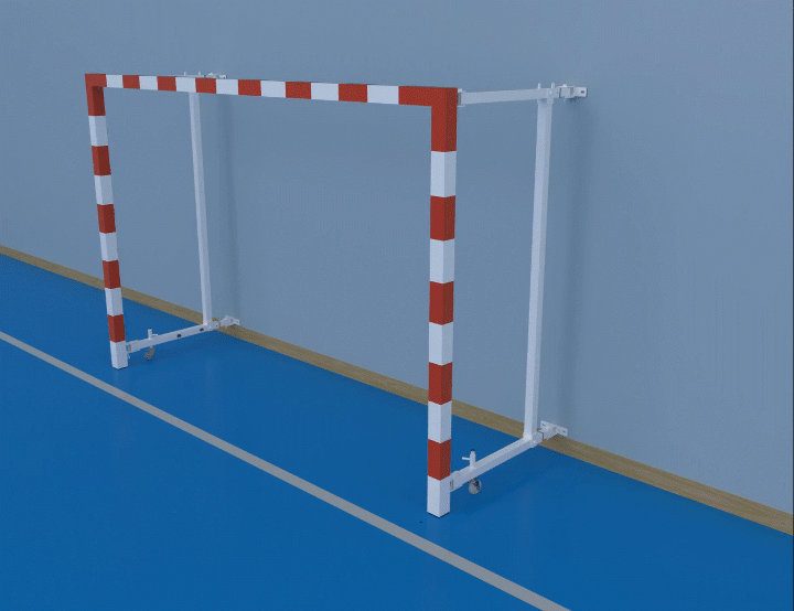 Buts de handball rabattables. Façade monobloc en acier galvanisé 80x80mm.