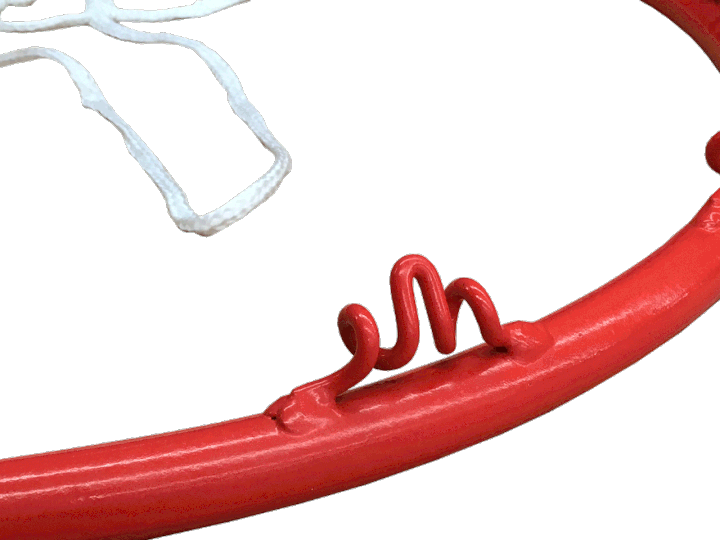 - Anneau de basket-ball standard, en acier massif plastifié orange de 18mm de diamètre.