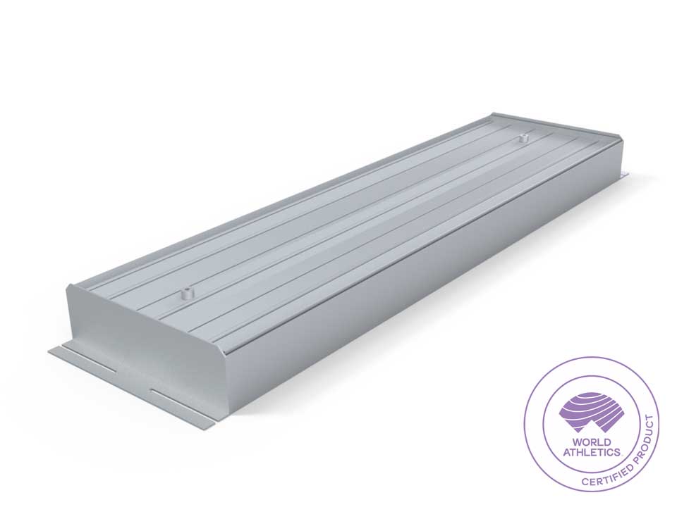 Couvercle avec rebords pour planche d'appel, fabriqué en aluminium, à positionner dans le cadre à sceller en lieu et place de la planche lorsque celle-ci n'est pas utilisée.