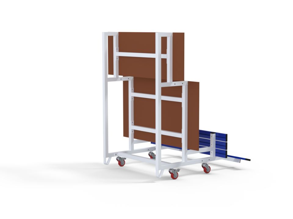 Escalier mobile en acier plastifié blanc 40x40mm pour l'évacuation des supporters.