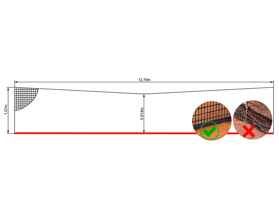 Filet de tennis tressé Ø4mm à retombée parfaite, 6 mailles doubles avec bandes PVC et barres de cadrage