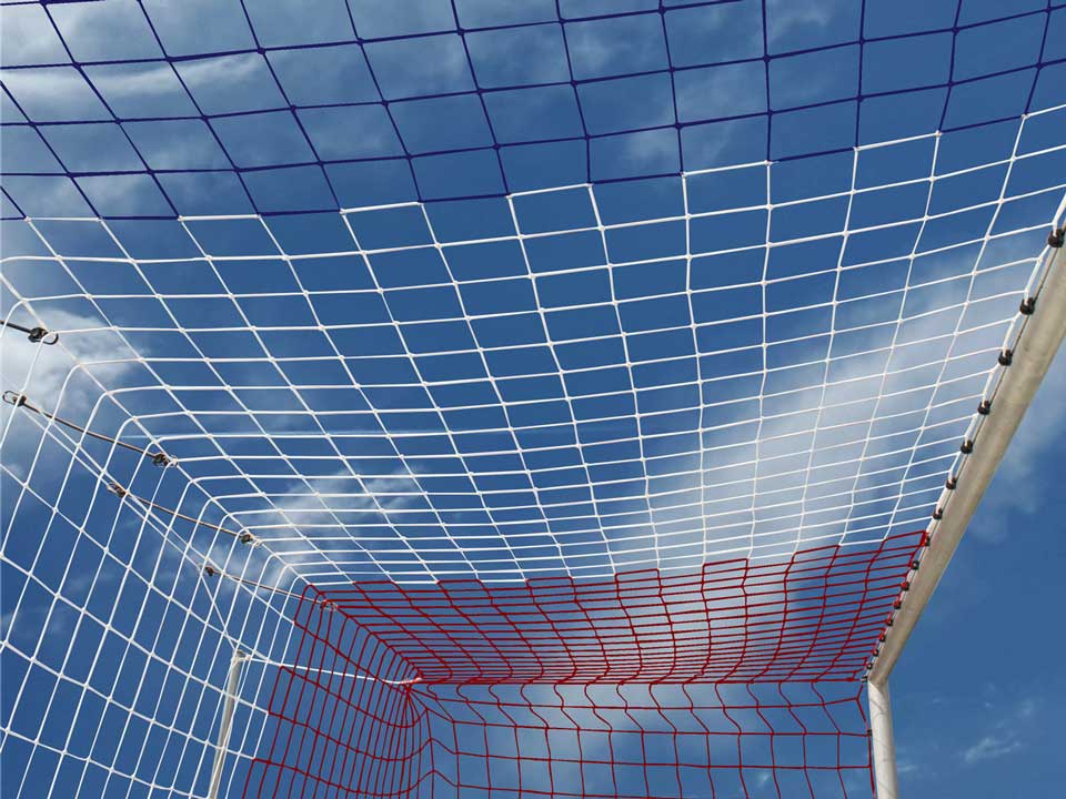 Filet de foot tricolore en fil tressé de 4mm de diamètre, 145mm de maille simple.