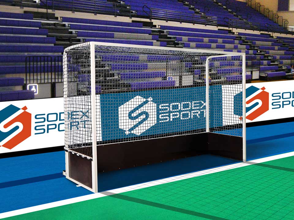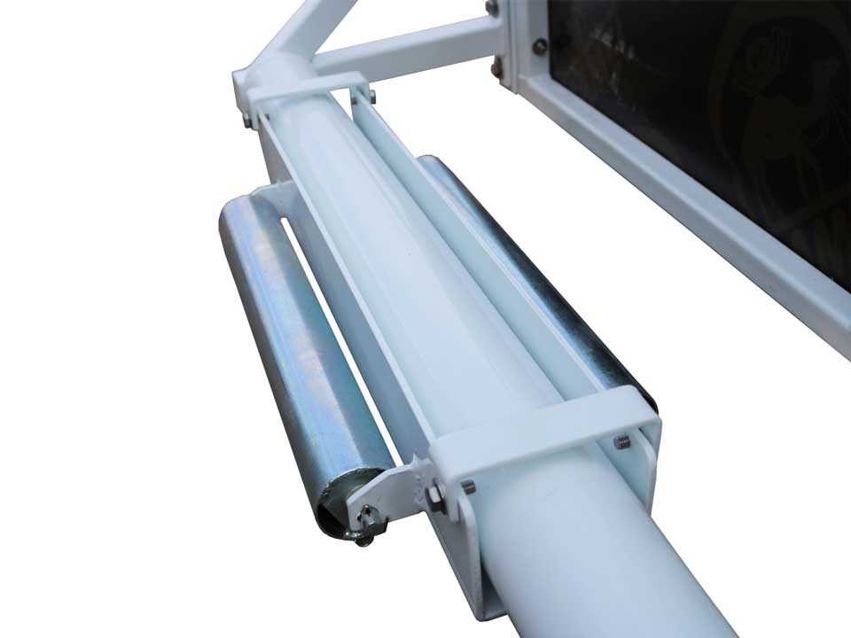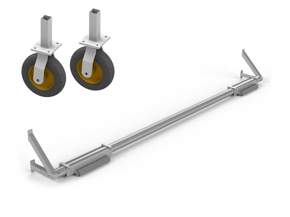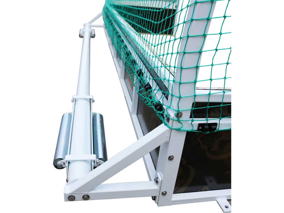Composé d'une barre arrière écartée du but, de 2 roues et de 2 contrepoids avec rouleaux de déplacement.
