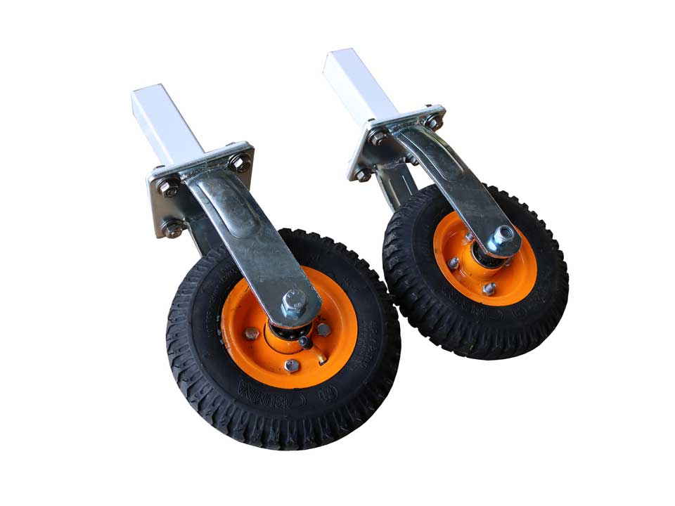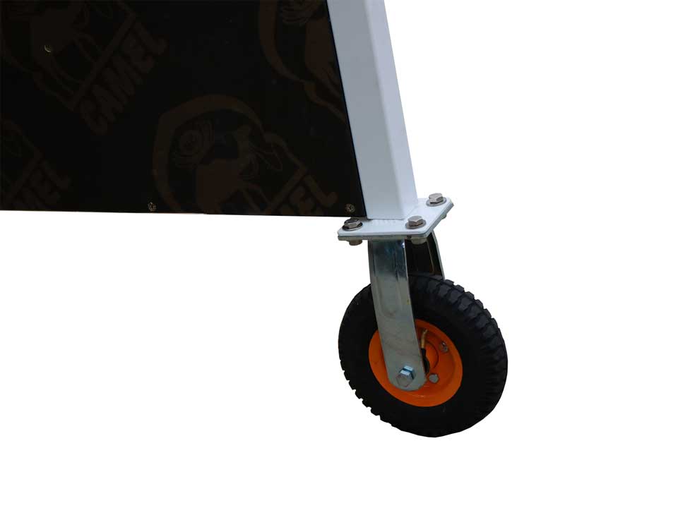 | Permet au but d’être sécurisé selon les tests du code du sport sans avoir à être fixé au sol | 2 roues pneumatiques s’insèrent fermement dans le montant pour accroitre la mobilité du but pendant le transport | |