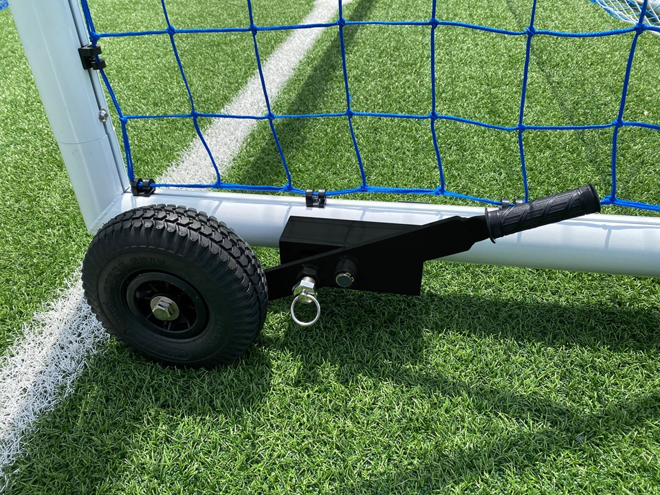 ![]() 1. Une fixation de part en part assure la solidité de l’ensemble et augmente la durée de vie du produit. | ![]() 2. Un levier auto-bloquant permet de changer de position sans effort. | ![]() 3. Roues gonflables larges permettant au but d’être manipulé sur terrain difficile. |