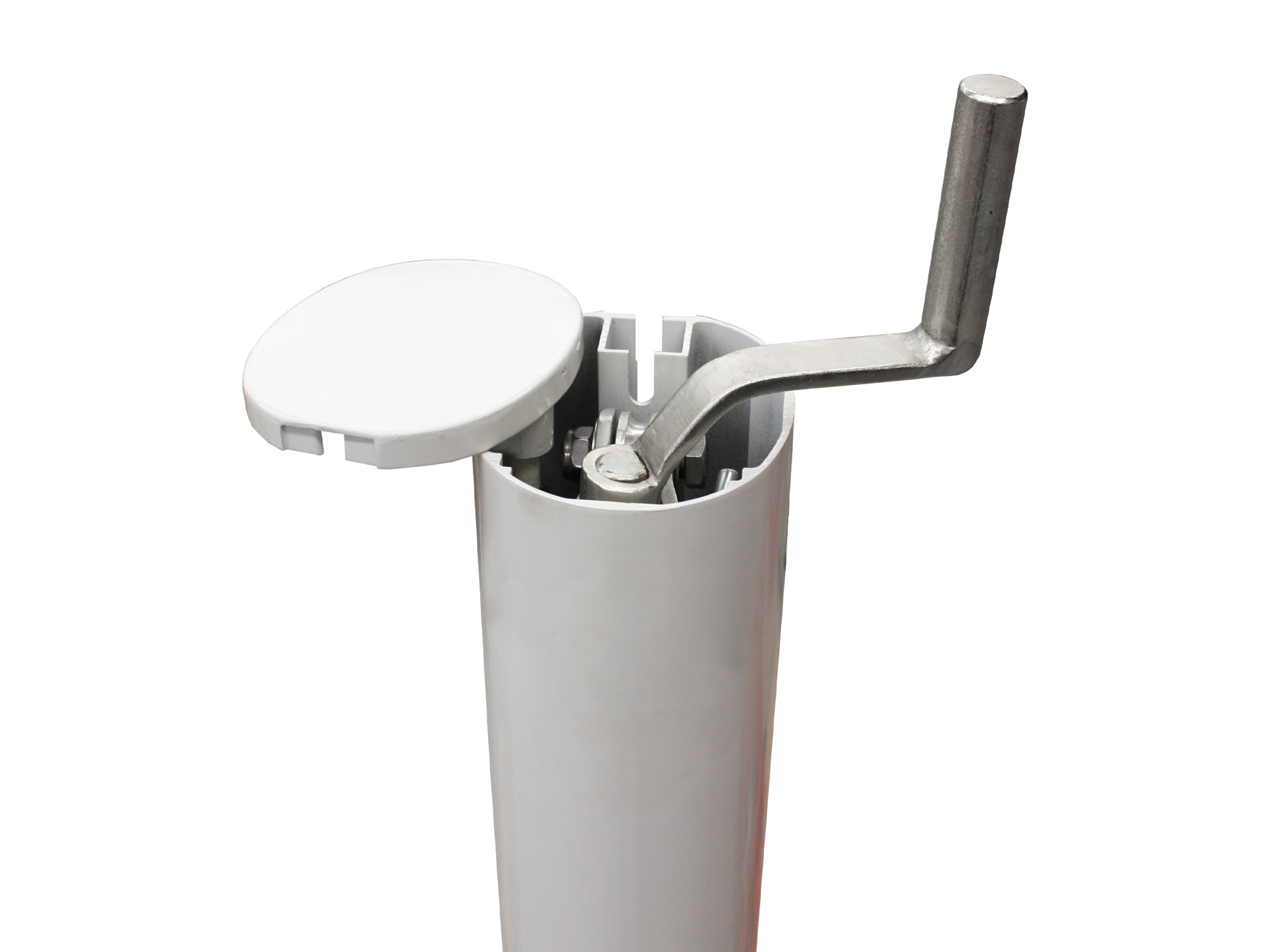 ![]() Treuil intérieur offre au produit un design épuré | ![]() Espace de rangement interne pour manivelle |