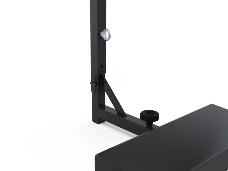 Contrepoids pour assurer la stabilité. Roues en PVC pour faciliter le déplacement.