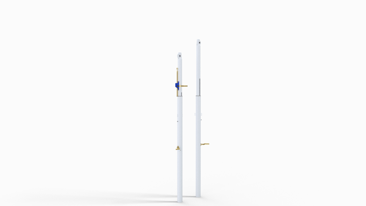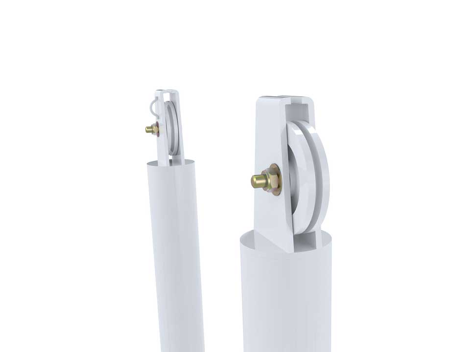 - Poteaux téléscopiques à sceller en acier de 90mm de diamètre.