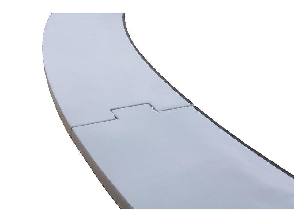Le produit est fabriqué en fibre de verre et présente un rapport poids/résistance élevé. |