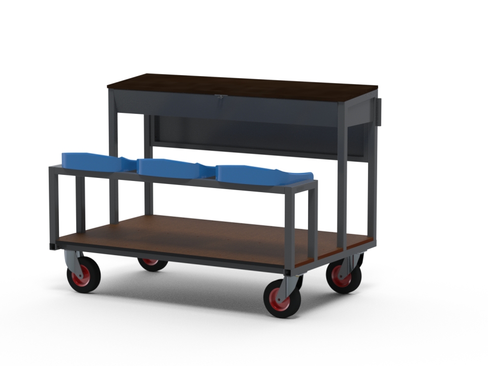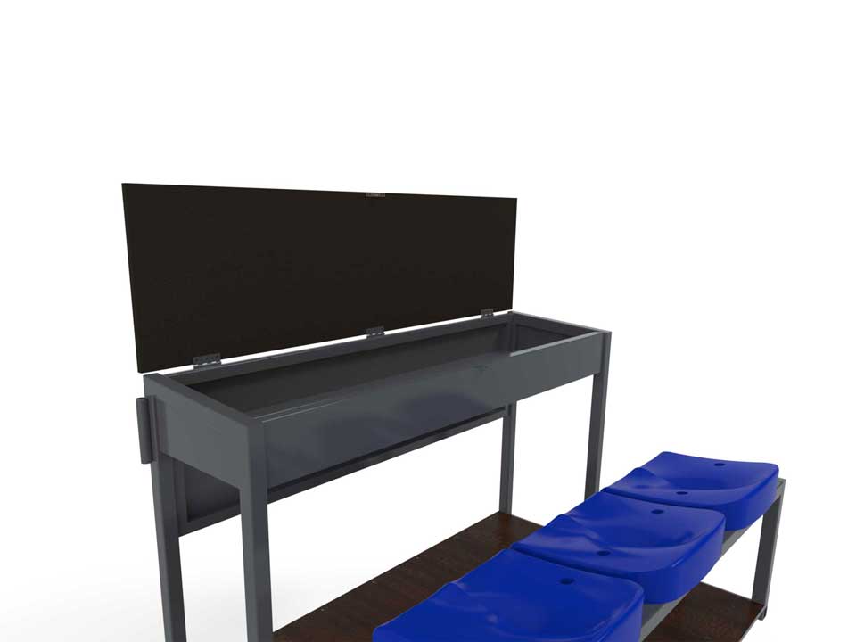 Le bureau incorpore un espace de stockage, permettant aux arbitres de ranger leurs équipements |
