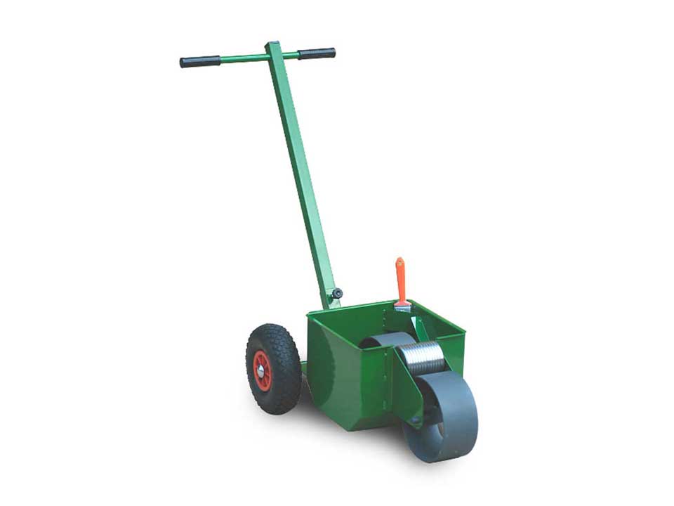 | Guidon réglable et désaxé pour éviter de marcher sur la ligne. Cuve inclinée pour éviter un maximum de pertes de la peinture | Rouleau central poiur une meilleure répartition de la peinture | 2 Roues pneumatiques à chambre à air pour amortir les irrégularités du terrain |