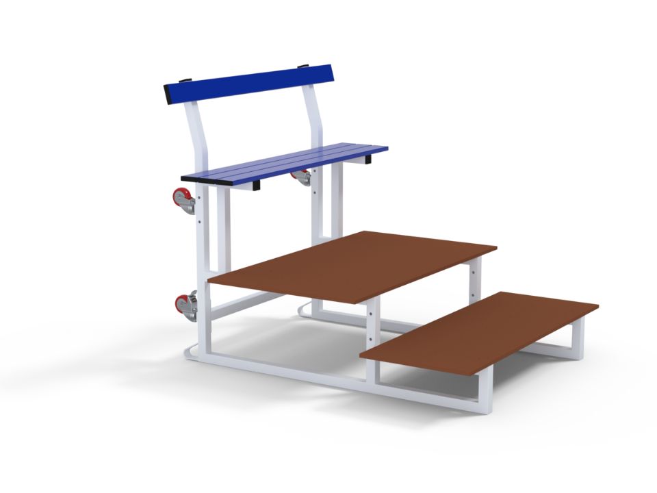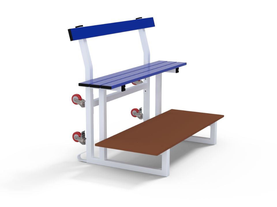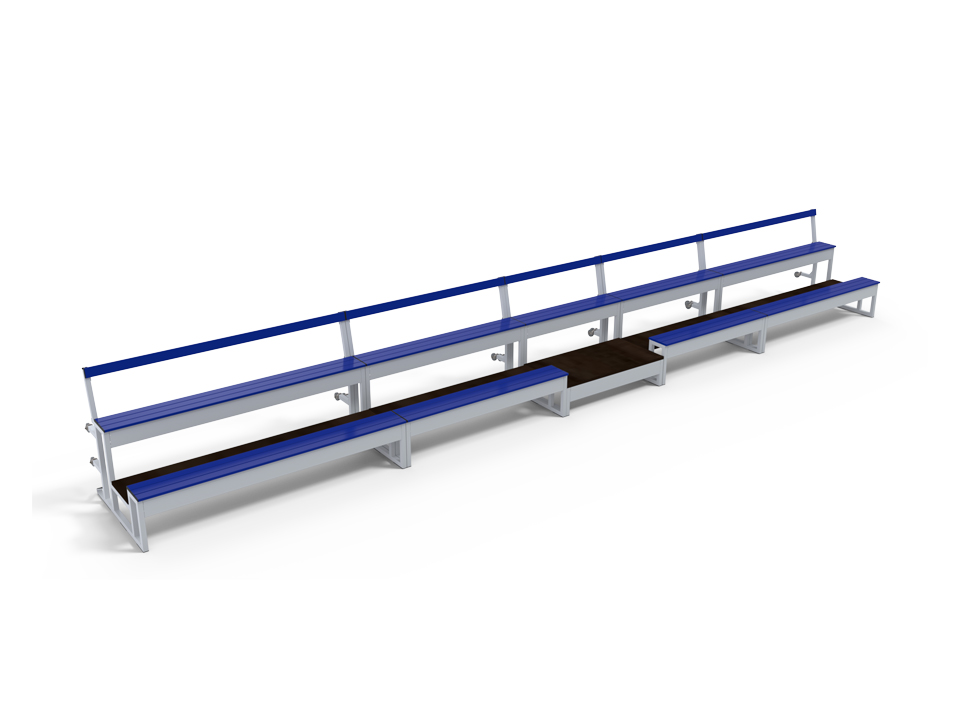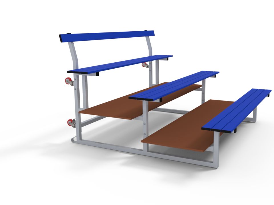 Gradins mobiles emboîtables prémiums 3 rangs pour terrains de sports et gymnases.
