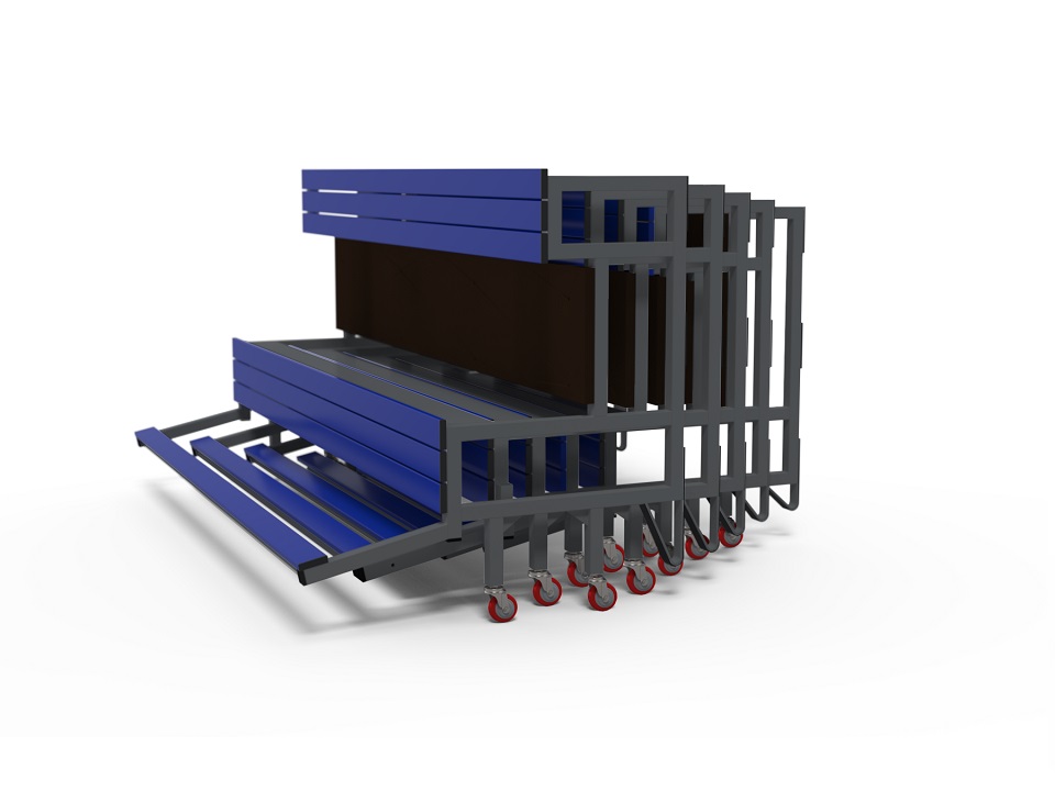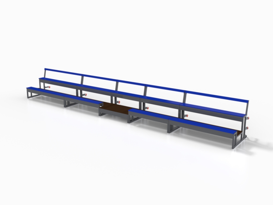 Gradins mobiles emboîtables prémiums 2 rangs pour terrains de sports en extérieur.