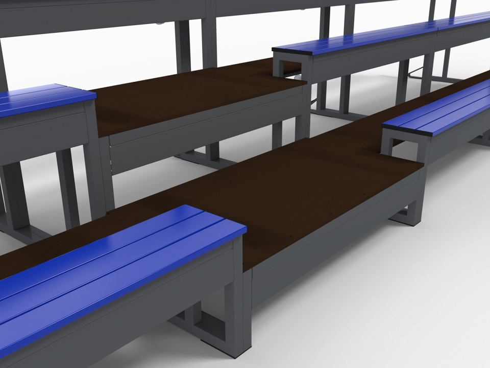 - Les modules sont composés de 4 tribunes et 1 escalier.