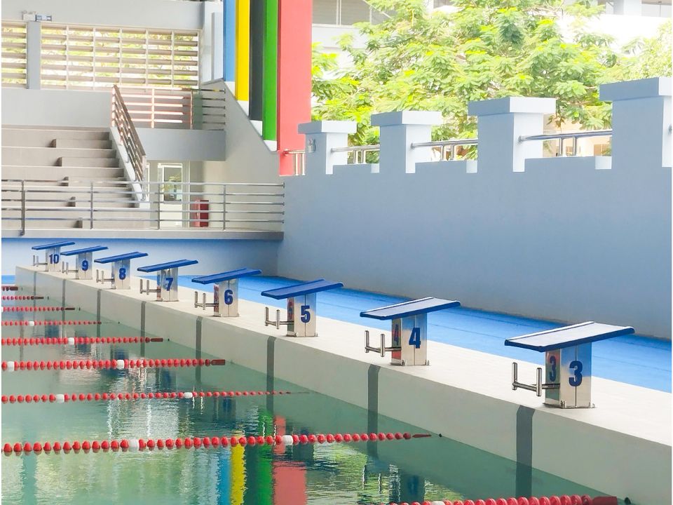 Plot de départ de piscine en acier inoxydable, avec surface anti-dérapante.