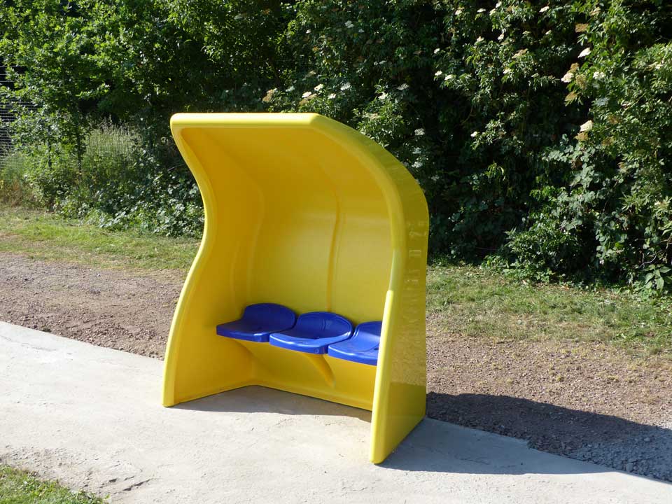 - Abri personnalisable au niveau de l'assise (banc ou sièges individuels), de la couleur ainsi que des stickers intérieurs et extérieurs.