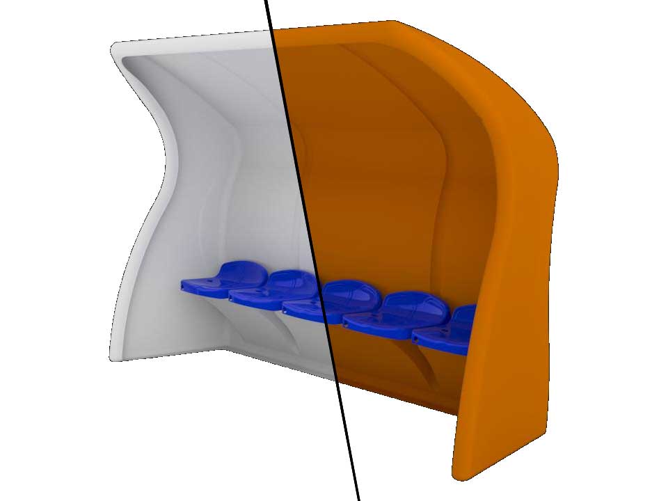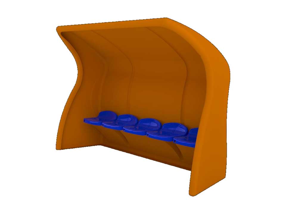 - Abri de touche monobloc standard ayant une capacité de 5 joueurs.
