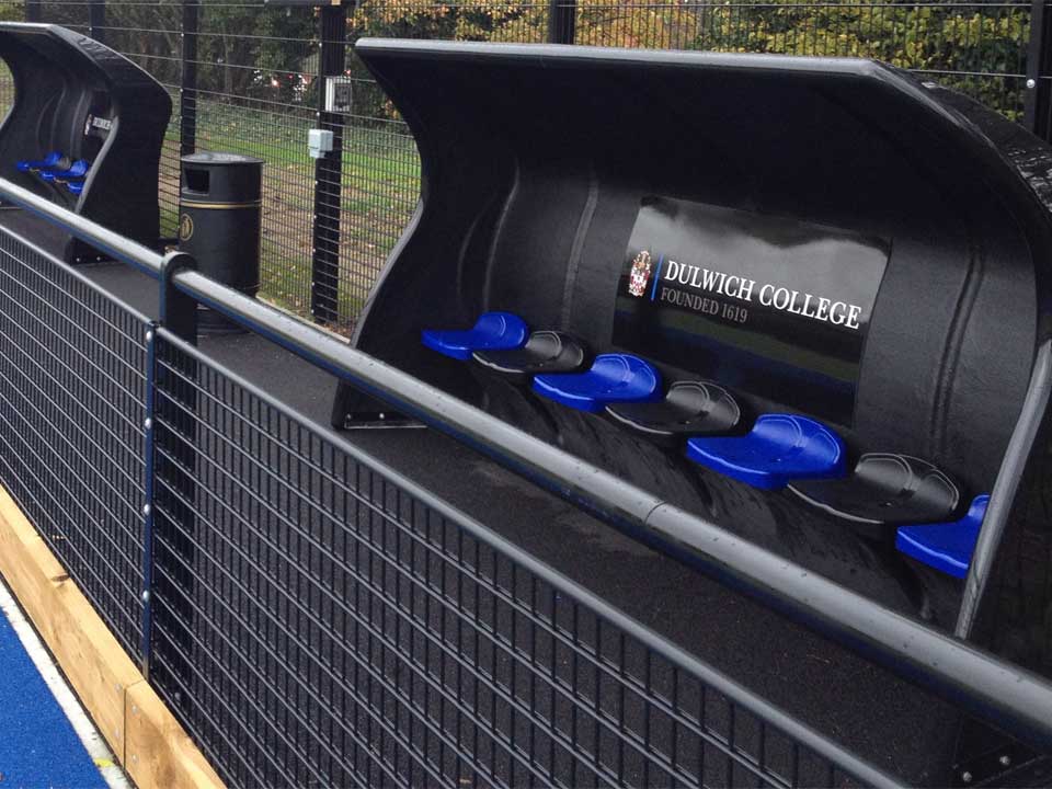 Abri de touche monobloc standard en composite d'une capacité de 7 joueurs.