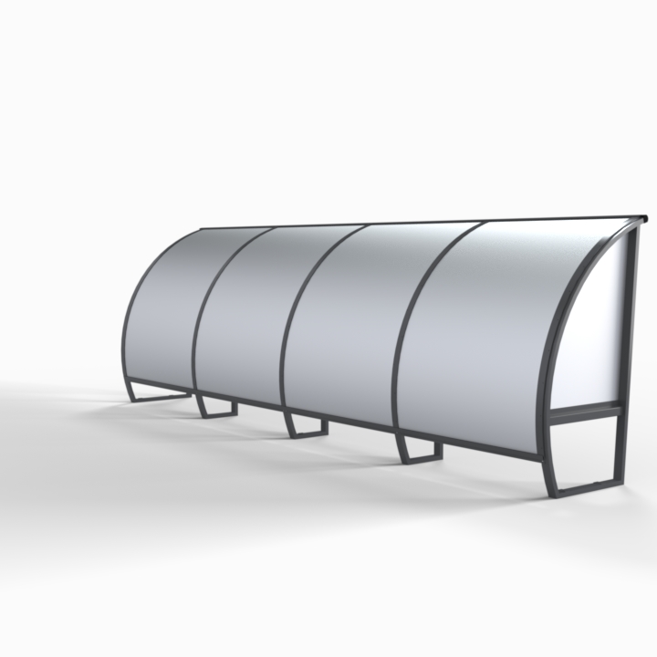 | 1. Ossature et assise 100% aluminium | 2 + 3. Les protections arrière sont insérées dans des gouttières en partie haute et basse et maintenues en place sur la hauteur grâce à des plats | 4. Cache clipsé sur la partie haute pour dissimuler la visserie et éviter toute blessure à la tête | |