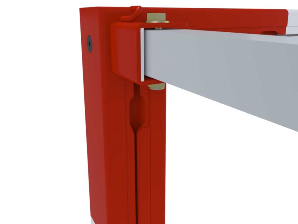 - Dimensions : 3.0m x 2.0m. - Façade en aluminium plastifié blanc et rouge 80x80mm. - Arceaux arrière et barre de liaison repliables en tube 60x30mm et 40x40mm. - Livrés avec ancrages au sol. - Les retours d'angle sont soudés directement sur les montants. |  |
