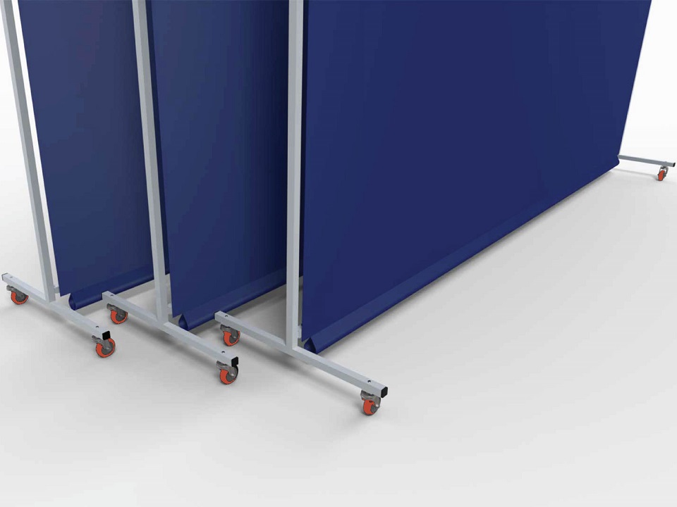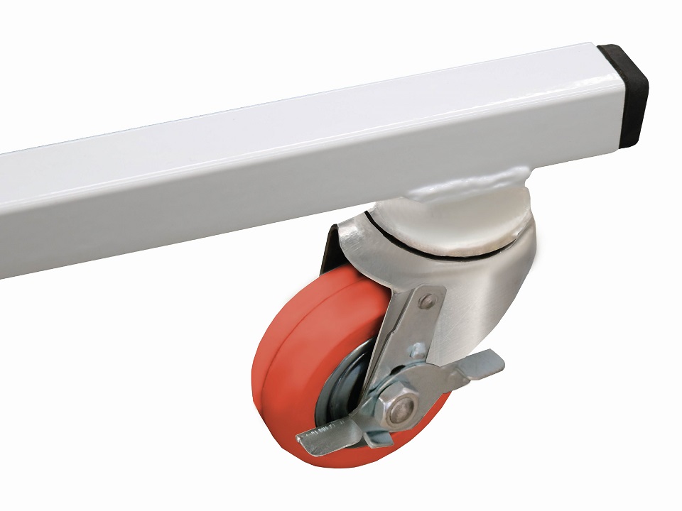 Facile à déplacer grace à ses 4 roues pivotantes. 2 roues à frein pour immobiliser la structure en place.