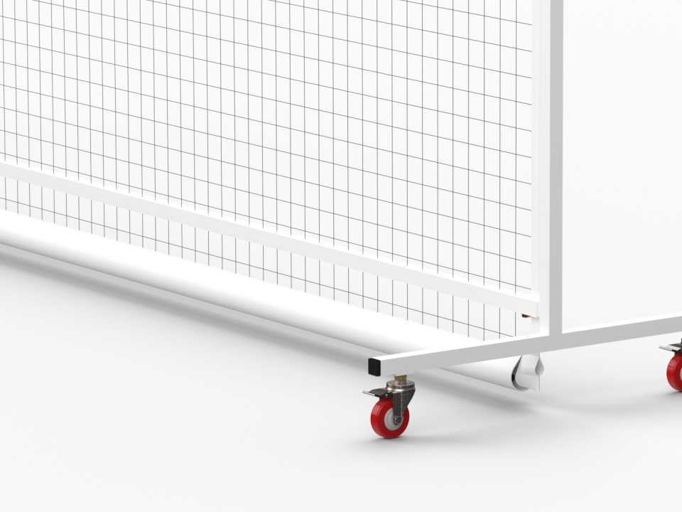 Facile à déplacer grace à ses 4 roues pivotantes. 2 roues à frein pour immobiliser la structure en place.