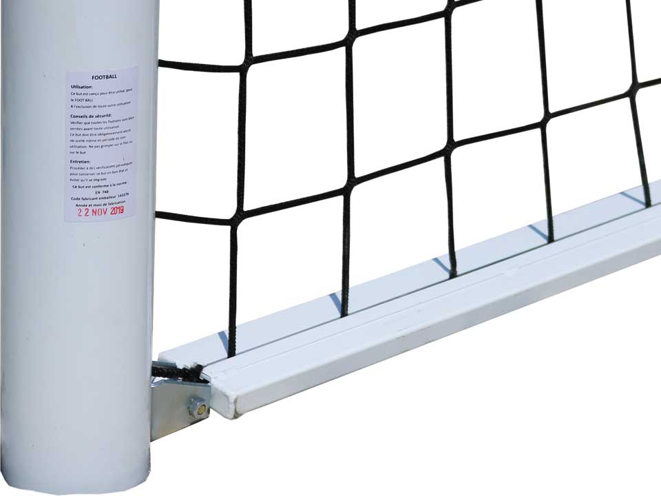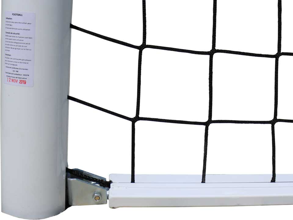 Cet ensemble de 4 charnières, pour cadres de relevage de filet, est destiné aux buts de football qui possèdent une section rainurée en aluminium.