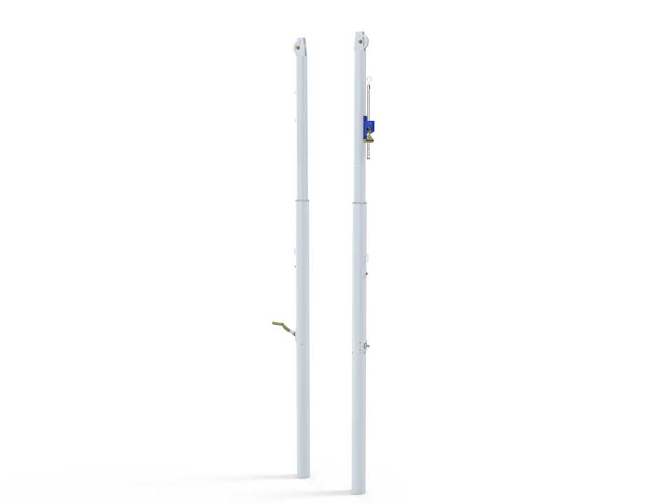 - Poteaux téléscopiques à sceller en acier de 90mm de diamètre.