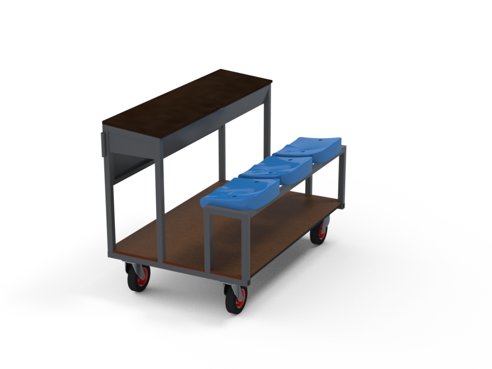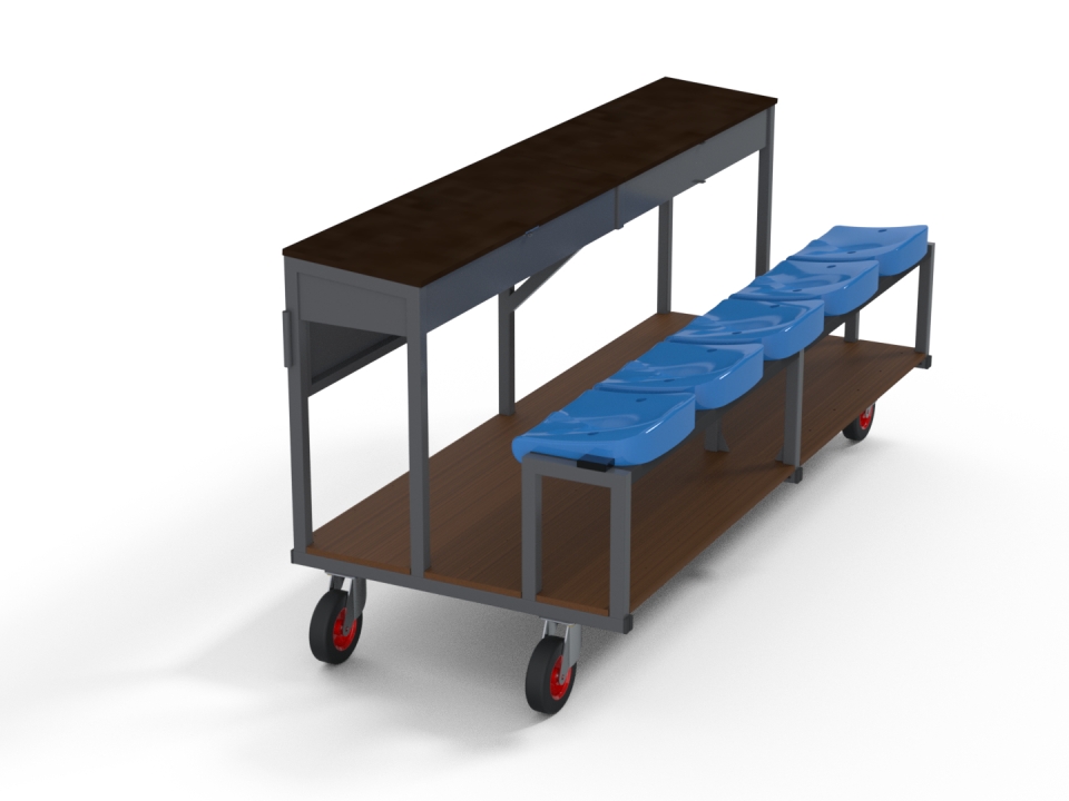 Le bureau incorpore un espace de stockage, permettant aux arbitres de ranger leurs équipements |