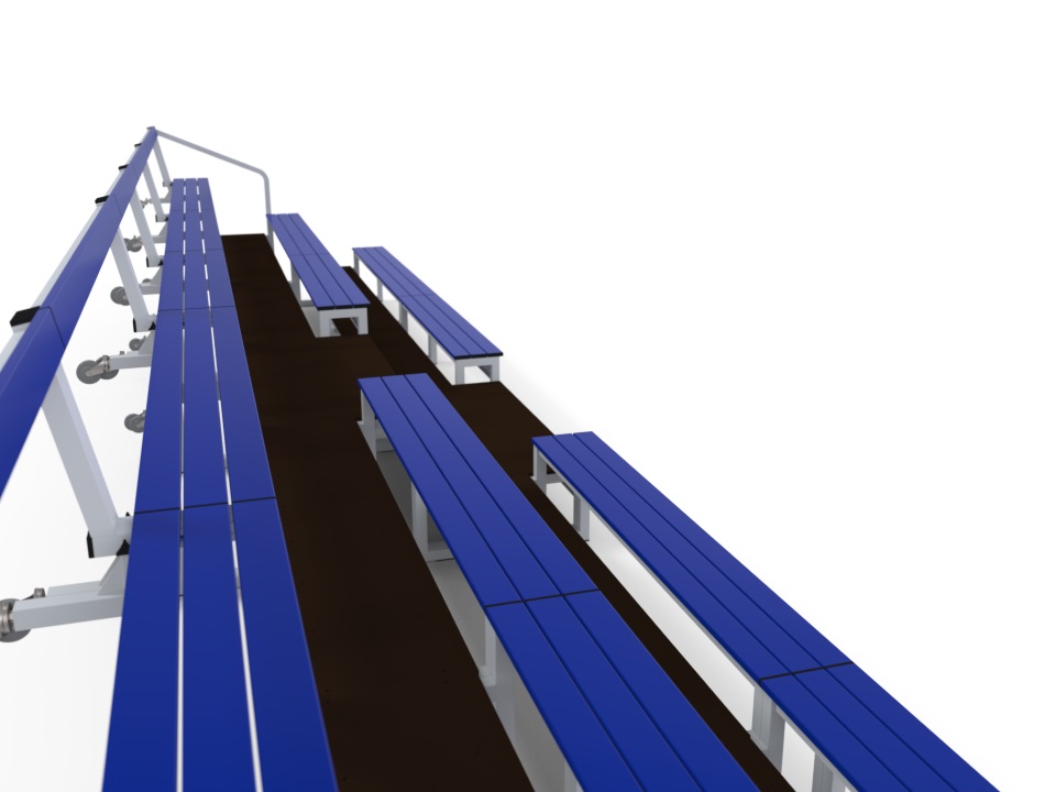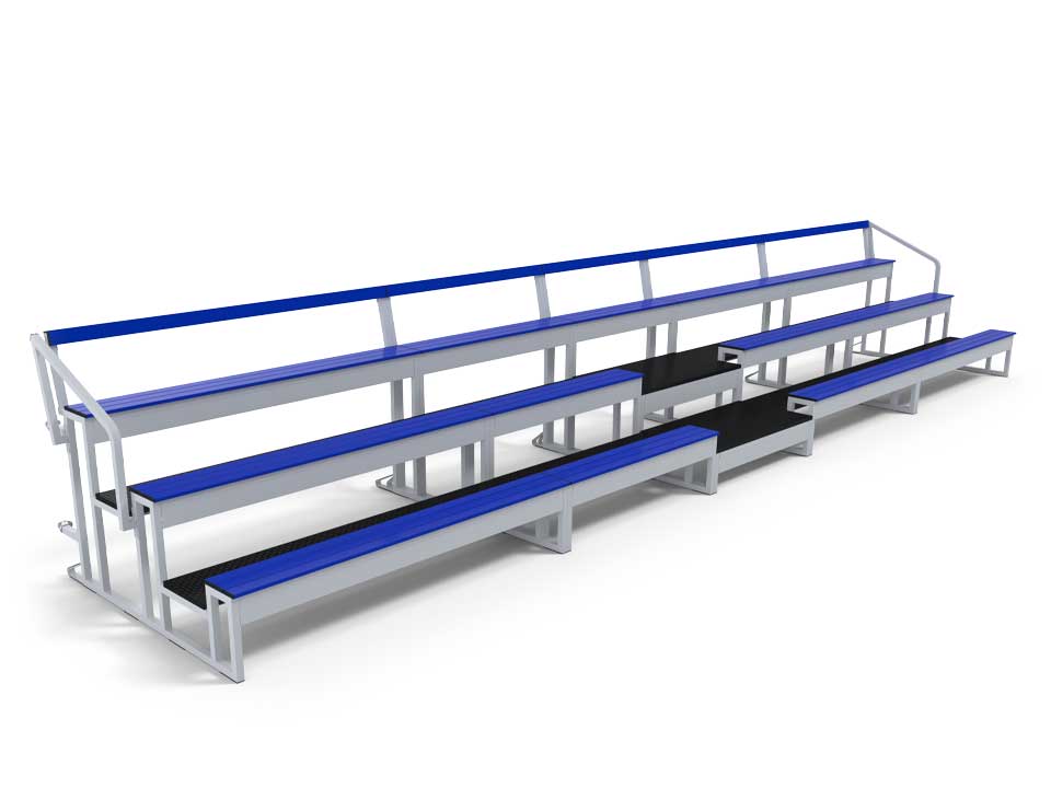 Gradins mobiles emboîtables prémiums 3 rangs pour terrains de sports et gymnases.